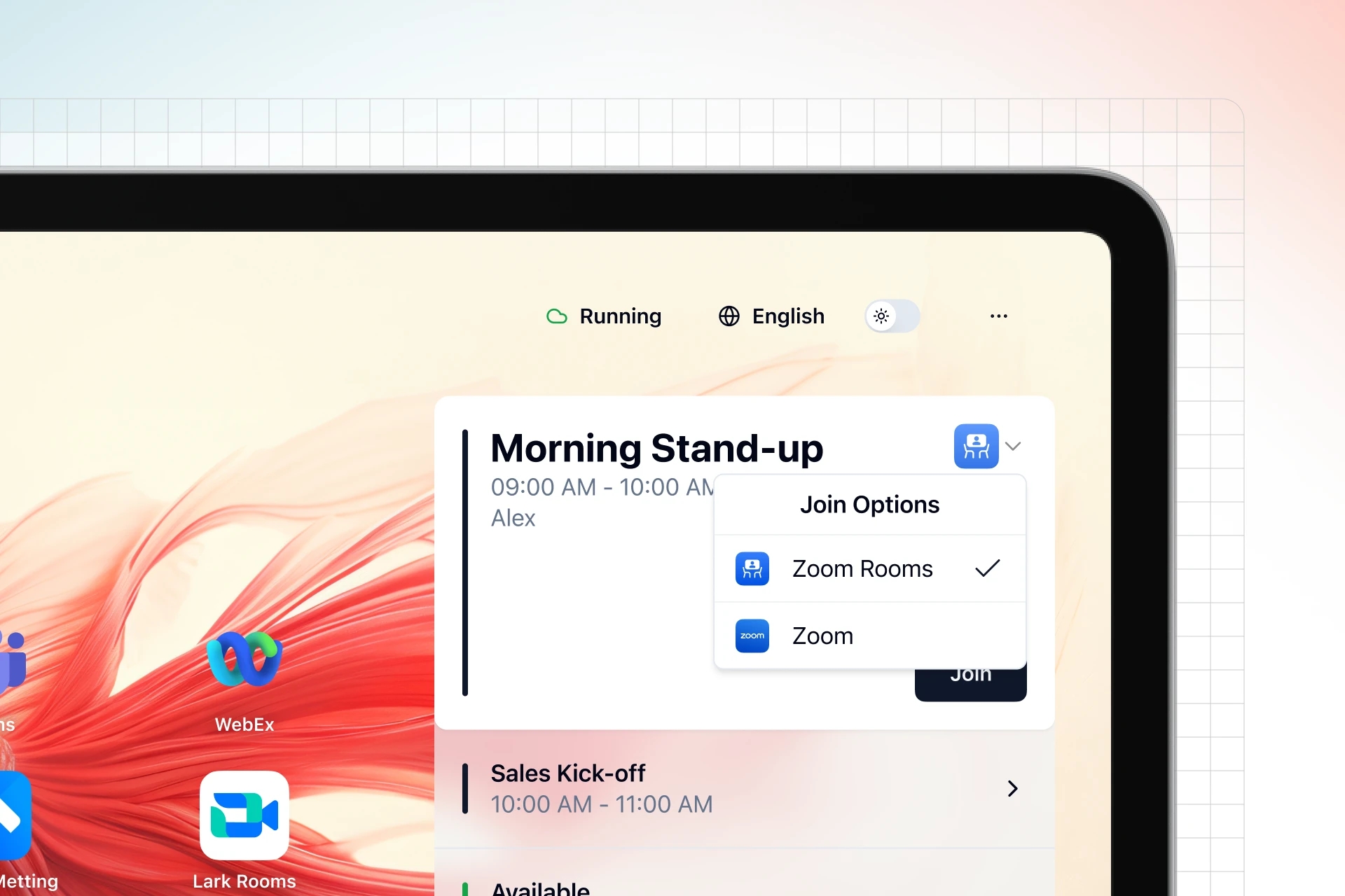 • Host 主屏幕通常也会同步显示这些日历信息,供会议室内的参会人员查看。
