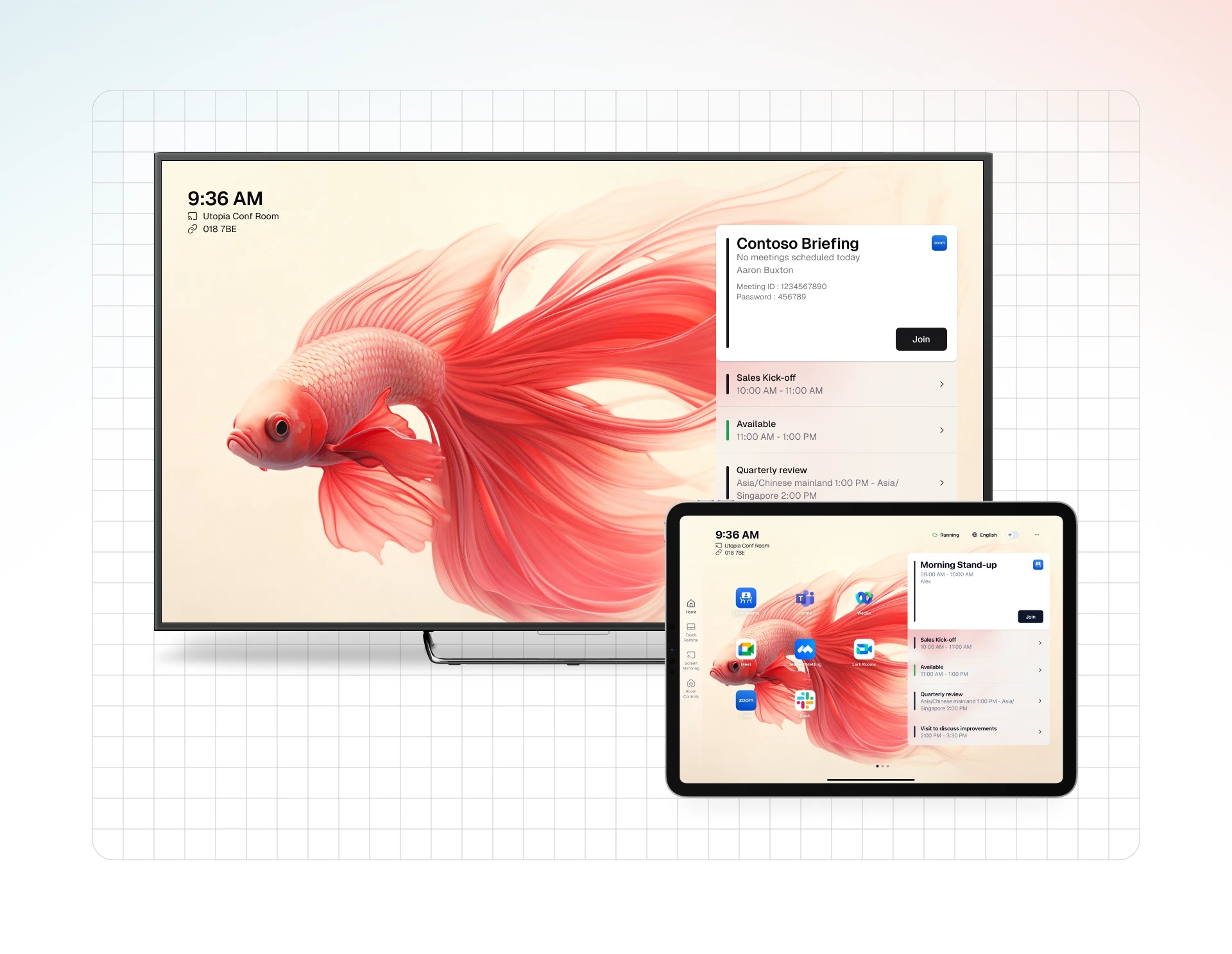 部署 VCA 后,用户可以在 Controller 中,一键切换到目标平台,VCA 会同步切换主机端和平板电脑端的应用。如果是预约会议,会议将自动出现在对应房间的屏幕上,用户只需点击参加按钮,VCA 自动处理跨平台会议。